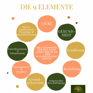 Im Hundetraining und der Hundeverhaltensberatung ist mein Ansatz allumfänglich und ganzheitlich auf Basis der von mir herausgearbeiteten 9 Elemente für das gute Leben mit Deinem Hund.